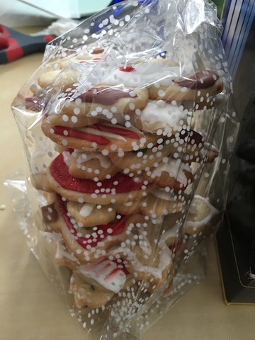 Made these with pre-christmas goodies (cutters, sprinkles, dragées, gift bags) sent by my mom: