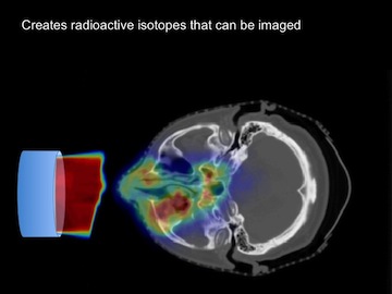 Animation showing proton irradiation and subsequent PET activity